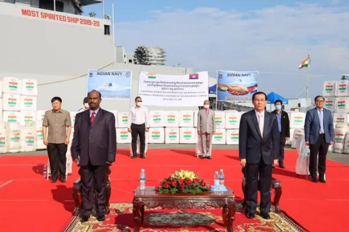 印度海军三号舰“契尔丹”(INS.Kiltan)抵达了柬埔寨西哈努克港。这艘护卫舰运载的15吨人道救援物资将捐赠给柬埔寨王国政府。 这批物资包括3000领草席、3000张被子、1500套男用救援设备、1500套女用救援设备。这批人道救援物资的总价值约11万美元。 印度海军三号舰“契尔丹”于2020年12月29日抵达柬埔寨西哈努克港。 这批人道救援物资交接仪式于2020年12月30日在西哈努克港举行,印度驻柬埔寨大使馆第二秘书B.Subba.Rao,以及柬埔寨国家灾害管理委员会副主席、洪森总理顾问洪沙蒙代表双方出席活动。