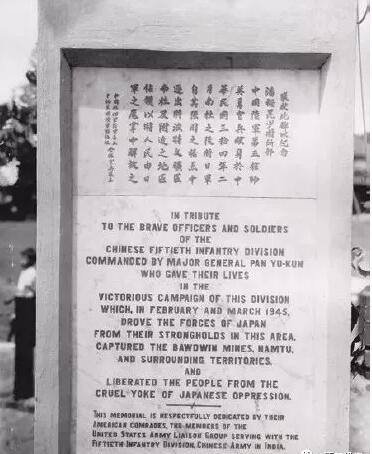 第50师的美方联络员为纪念碑举行落成仪式,以纪念在缅甸战役中牺牲的中国将士。