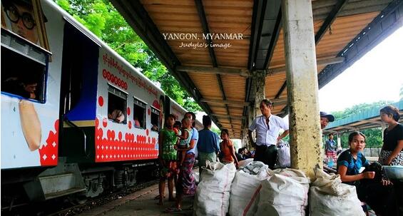 僧院里的尼姑们粉红色的僧袍衬着橙红色的笼基外加一条披在肩上的红布十分的赏心悦目在缅甸,男人出家是可以还俗的,而女人出家是不允许还俗的只能一生与佛灯为伴这也体现出了缅甸男女地位的不平等--------环城火车(Yangon Circular Railline) --------搭乘仰光环城火车,全程需3小时,车票1美元仰光的火车站是英国人在一百多年前规划兴建的,时至今日仍承载着仰光城市运转的需要环城火车很是破旧简陋时速又慢,很像我们从前的绿皮火车不知道也许哪天也会慢慢的就消失了所以,如果去缅甸,建议还是去体验一下那一段穿越的时光尽管沿途的风景真的是十分一般。
