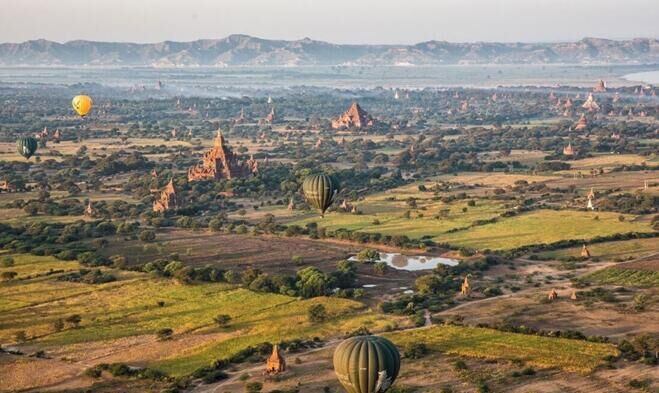 “手指之处必有浮屠”,这是对蒲甘佛塔之多的形容。无论朝哪个方向随手一指,总有属不清佛塔在眼前,而每个佛塔都有属于他们的故事。据说在蒲甘方圆数十公里范围内,最多时共有宝塔440万多座,因此蒲甘享有“万塔之国”的美誉。 黎明破晓,晨雾氤氲中,万千佛塔间热气球腾空而起,邂逅一场最梦幻的日出!亦或是,随意爬上一座佛塔,观看那每日准时上演的血色黄昏大戏。 佛塔和晨雾缭绕在一起,晨雾中被放飞的热气球,就仿佛是一个个自由翱翔的人儿,在那一片辽阔的天空中悠然漂浮。提到热气球,相信很多去过蒲甘的人都会在记忆深处留下那片美景,漫天的气球,喷薄的日出,或者是昏黄的暖阳。 去缅甸一定要去蒲甘,去蒲甘一定要看日出日落,当你身临其境的时候,才能体会到那种来自心灵深处的洗礼。