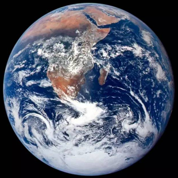 原图来自于 1972 年,最后一次的阿波罗登月计划。此后很长时间,人类都没有飞船能再次以如此靠近的距离对地球进行拍照,所有从外太空拍摄的地球“全身照”其实都是拼贴组合之作。