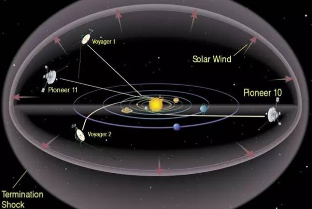 旅行者 1 号 在此之前,NASA 已经向银河系先后发射了先驱者 10 号、先驱者 11 号,它们承载了两个方向的探索任务。以前记载在中学课本上为人熟悉的“小黄图”正是出于先驱者 10 号上的小圆盘,圆盘上简单记录了人类身体构造,以及地球在太阳系中位置,希望能够遇上外星文明。