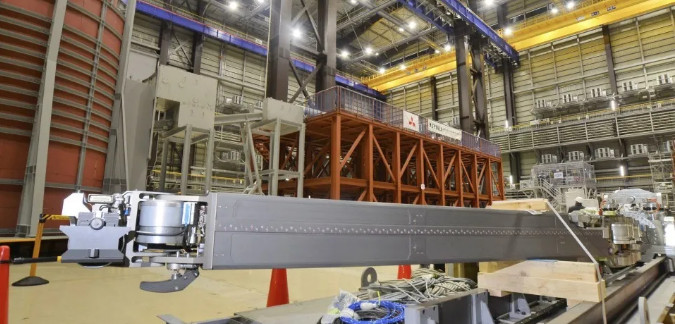 这将是日本探测器在最近位置上的直接观测,再加上太阳活动变得活跃,“或许能得到很有趣的数据”(JAXA助教村上豪语)。 3月上旬至5月上旬,MIO将在距离太阳6000万至1亿公里处一边飞行一边观测。据悉不仅距离太阳较近,而且可以与地球交流的数据量也会增加。届时将使用磁场观测装置等调查太阳风和太阳射线。 MIO去年10月以来实施了利用水星重力的航行方式。据称通过观测太阳风,还有助于加深对受太阳影响等的水星环境的理解。 二、共同社2月1日电,用于取出东京电力福岛第一核电站2号机组熔落核燃料(燃料碎片)的机械臂1月31日从神户市的工厂运抵福岛县楢叶町的日本原子能研究开发机构的研究设施。
