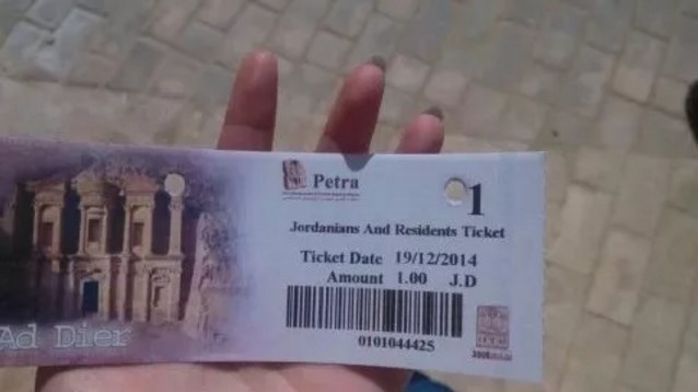图:门票,有居住证者及当地人的门票只有1JOD 佩特拉古城是约旦南部的一座历史古城,在2007年7月8日被评选为世界新七大奇迹,它几乎是全在岩石上的雕凿而成的,其岩石带有珊瑚宝石般的微红色,在阳光的照耀下格外好看,所以又被称为“玫瑰古城”。我很喜欢它的这个名字,可能女孩子对玫瑰之类的总是会有莫名的好感。
